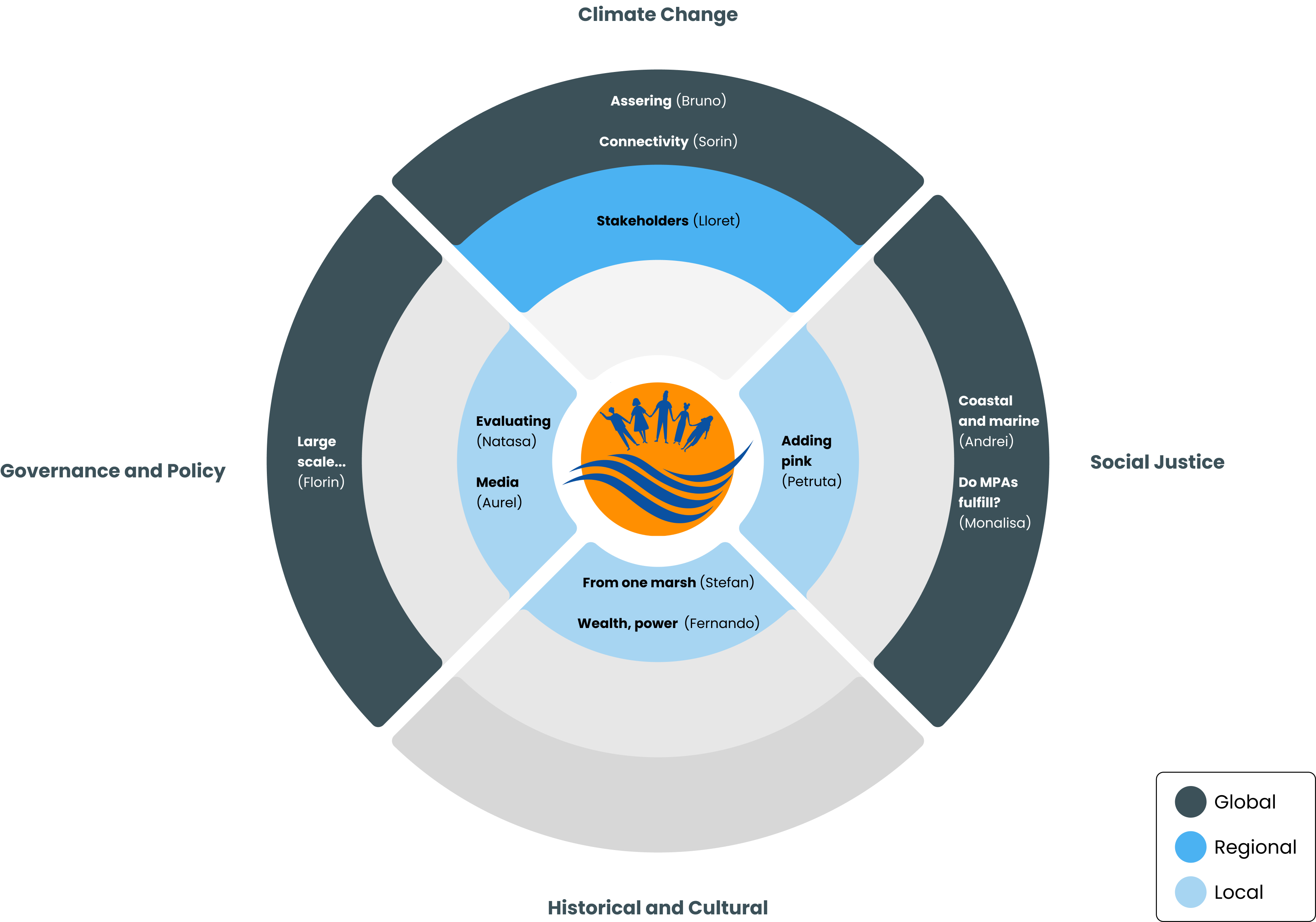 Our Projects Climate Change and Ecological Impacts Stakeholders' use of marine spaces under a changing climate: The case of the Black Sea Regional Elena Lloret-Lloret Read more Assessing the effectiveness of marine protected areas in protecting marine biodiversity from climate change Global Brunno Freire Oliveira Read more Connectivity of Marine Protected Areas based on Species Distribution Modelling. A case study for tuna species Global Sorin Constantin & Serban Ioan Daniel Read more Social Justice and Equity Coastal and marine environmental justice. A review of Environmental Atlas cases. Global Andrei Schvab Read more Adding pink to Blue Justice: the women of the Danube Delta Local Petruța Teampău Read more Do MPAs fulfill the expected effects on coastal social-ecological vulnerability? Global Monalisa Silva Read more Governance and Policy Evaluating Policy Readiness: A Comparative Analysis of Romania's Marine Protected Areas Policies within the European Union Framework National Maria-Nataşa Văidianu Read more Marine and coastal policies in Romania media discourse: A comparison between national and local newspapers National Giugăl Aurelian & George Secareanu Read more Large-scale socio-economic trends driven by MPAs Global Florin Miron & Florin Tatui Read more Historical and Cultural Dimensions Exploring from one marsh to another through the lens of cartography Local Stefan Constantinescu Read more Exploring the Interaction between Wealth, Power, and Ethnicity in the Coastal Community of Sulina City Local Fernando Varga Read more